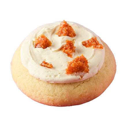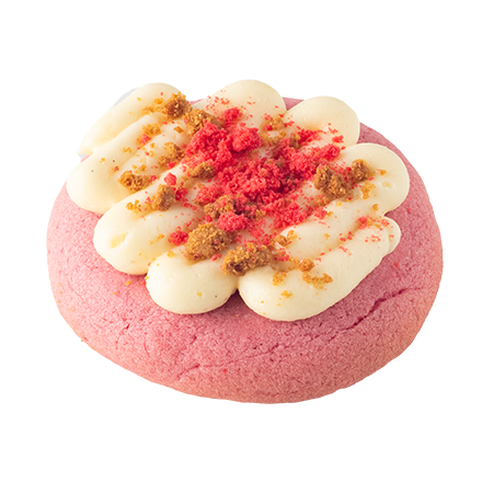 A soft strawberry-flavored cookie topped with luscious vanilla cream cheese frosting and finished with vanilla and strawberry crumbs.