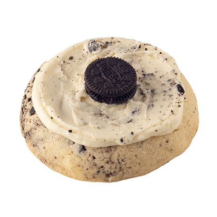 A soft vanilla cookie loaded with Oreo crunch, topped with smooth and creamy vanilla buttercream frosting.
