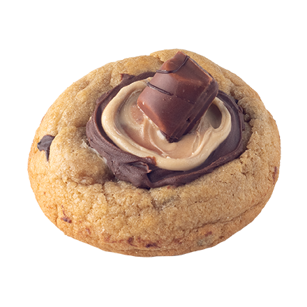 A thick NYC-style cookie packed with chocolate chips, filled with rich Kinder paste, and topped with chunks of Kinder chocolate.